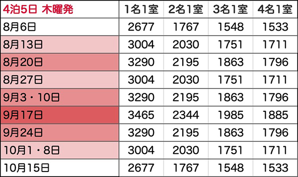 ※上記料金は2026年4月1日〜2027年3月31日有効催行期間 通年催行
