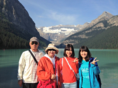 今回は偶然にも参加者は私たち家族だけでしたので、ガイドさん一人と家族三人で貸し切りツアーのような形でゆったりと観光することができました。私は現在、カナダに住んでいるため、レイクルイーズやロッキーには何度か来たことがありました。現地のことを知り尽くしたガイドさんとまわった今回のツアーは、カナダやロッキーが初めての両親はもちろん、何度かロッキーに来たことがあり多少知識のある私でも、一日中新しい発見があり、飽きることがありませんでした。