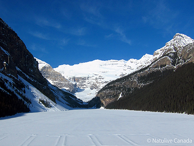 五月初旬でも、まだレイクルイーズには一面に氷が張っていて、夏や秋のエメラルドグリーンに輝く水面とは全く違った印象でしたが、凍った湖もまた趣があって非常に美しかったです。コロンビア大氷原へ雪上車で向かう道中、車では行けないような道を通るため、スリリングで面白かったです。また、昨年できたばかりだというグレイシャースカイウォークは、思わず足が竦んでしまうような高さに作られたガラス張りの橋で、ロッキーの山々の迫力を十二分に楽しむことができました。素晴らしいお天気と素敵なガイドさん、そしてロッキーの美しい自然に囲まれて忘れられない家族旅行となりました。