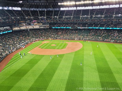 シアトルのTモバイル・パークは、世界で2番目に大きな開閉式屋根付きの天然芝球場。試合前には国歌演奏が行われ、7回表終了後には観客全員が立ち上がり、あの有名な「私を野球へ連れてって」を大合唱。地元の熱狂的ファンの応援パフォーマンスも見もの。この機会に本場大リーグの熱気をご体感ください!