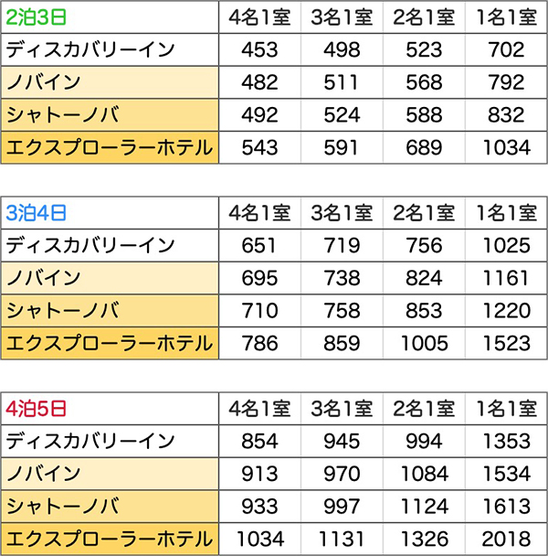 | 2泊3日・3泊4日・4泊5日 | 含まれるもの |